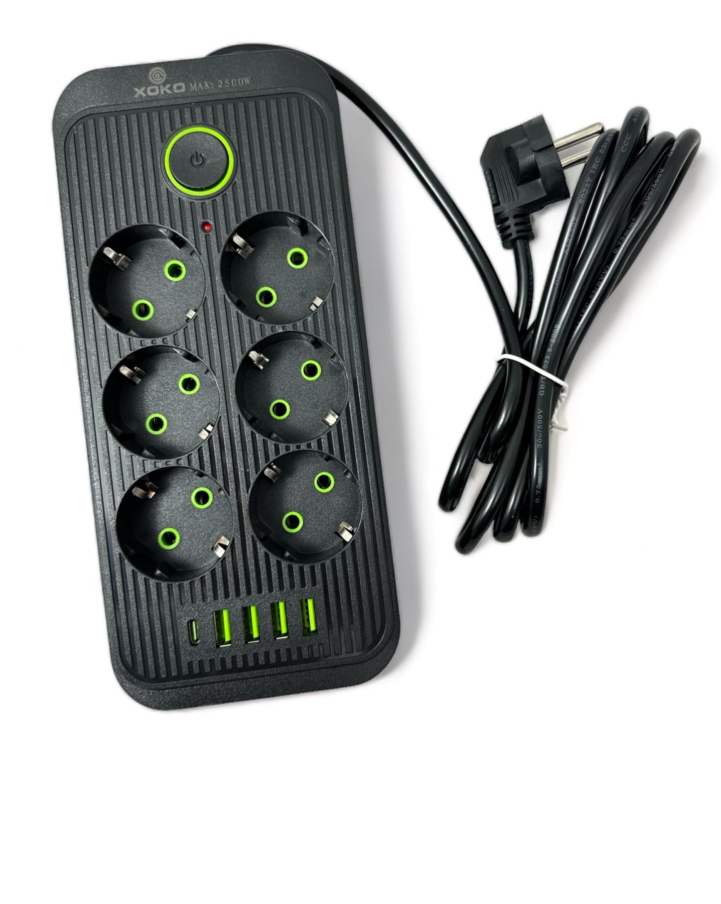 Мережевий фільтр XoKo SP-6-4-1, 2 м, 6 розеток, 5 USB- дозволить підключати до живлення кілька пристроїв, маючи лише одну розетку.