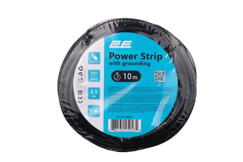 Мережевий подовжувач 2E модель PC315M10 призначений для підключення офісної та побутової техніки сумарною потужністю до 3,5 кВт. Має одну євророзетку типу Schuko із заземленням. Трижильний кабель із перерізом жили 1,5 мм2, матеріал провідника – мідь.