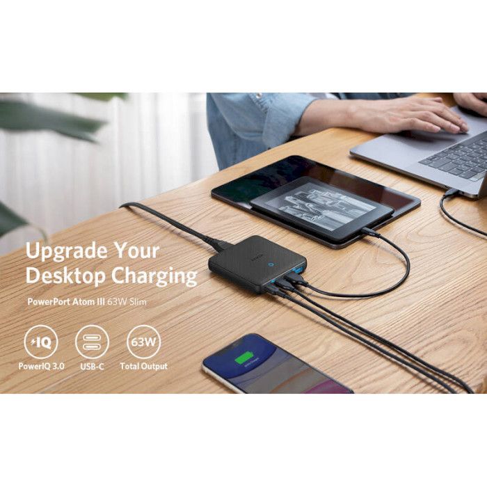 Завдяки товщині всього 18 мм PowerPort Atom III 65W Slim пропонує неперевершені можливості зарядки, займаючи при цьому дуже мало місця на вашому столі.