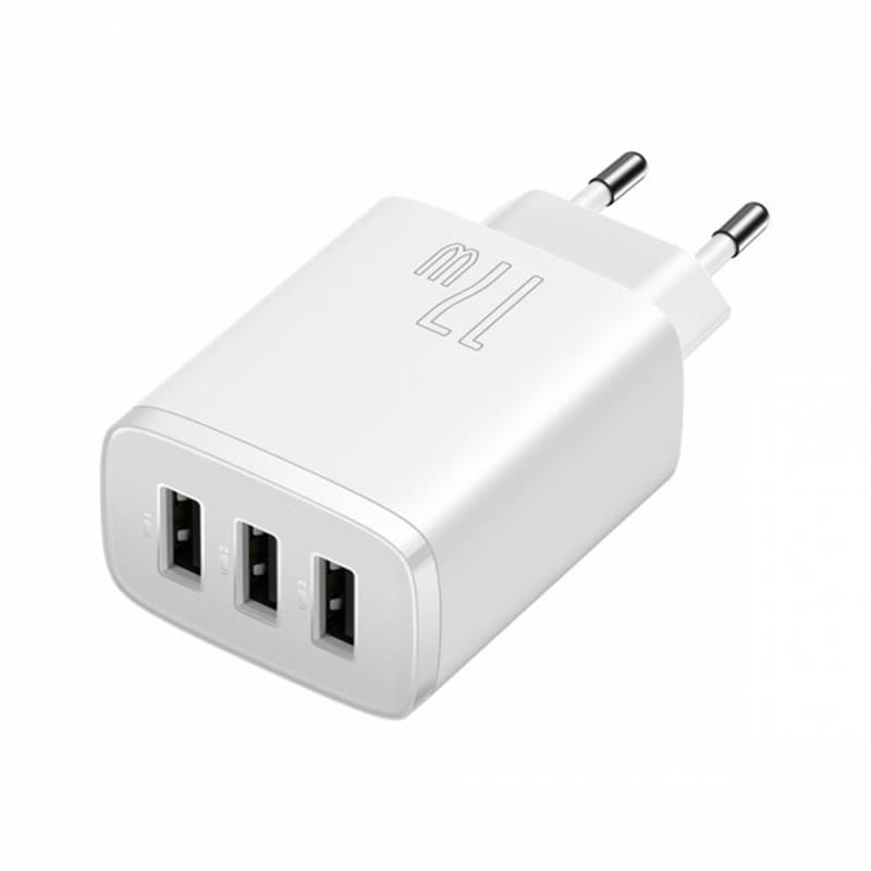 Мережевий зарядний пристрій Baseus Compact (3USB, 3.4A) 17W White (CCXJ020102)