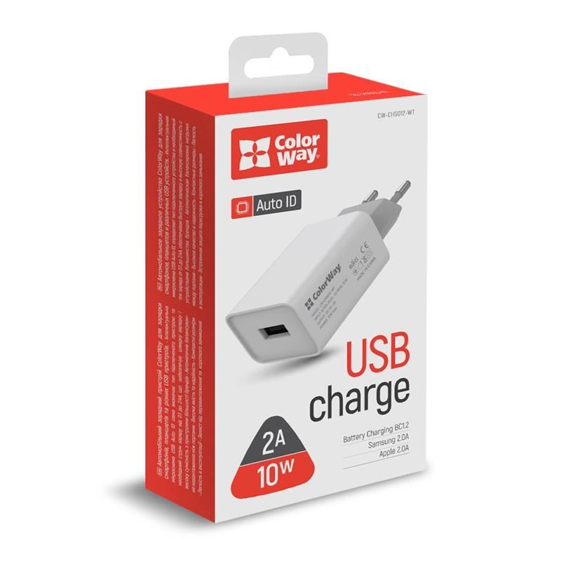 Мережевий зарядний пристрій ColorWay AutoID (1USBx2A) White (CW-CHS012-WT)