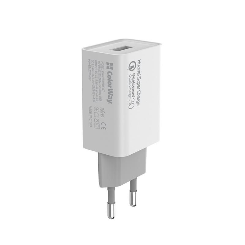 Мережевий зарядний пристрій ColorWay QC3.0 (1USBx4A) White (CW-CHS014Q-WT)