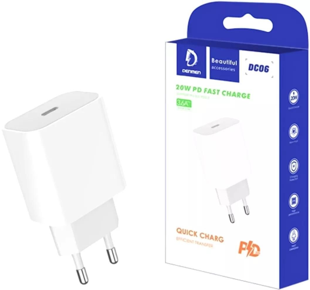 Мережевий зарядний пристрій Denmen DC06 (1USB 3.6A) PD20W+QC3.0 White (DM-DC06-WH)