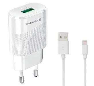 Мережевий зарядний пристрій Grand-X (1xUSB 2.1А) White (CH-17WL) + кабель Lightning