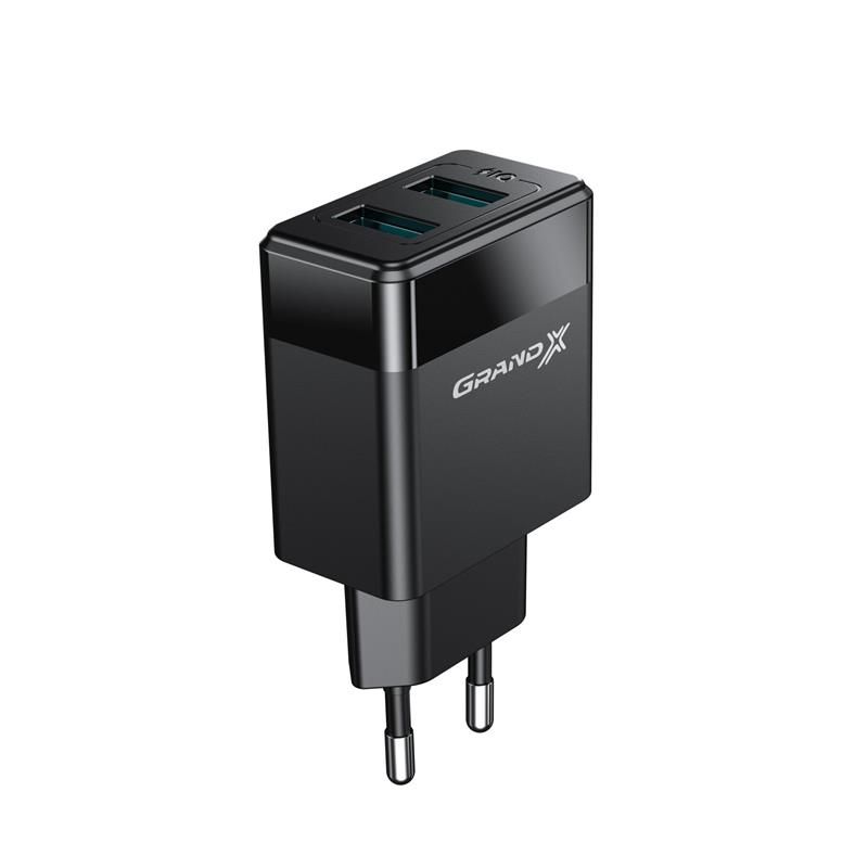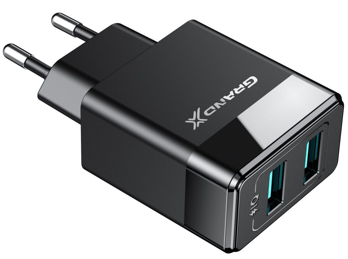 Мережевий зарядний пристрій Grand-X (2xUSB 2.4А) Black (CH-50)