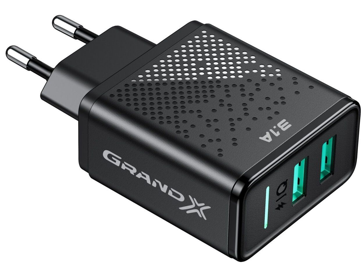 Мережевий зарядний пристрій Grand-X (2xUSB 3.1А) Black (CH-60)
