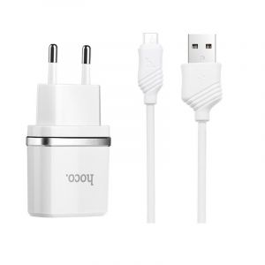 Мережевий зарядний пристрій Hoco C12 (2USB, 2.4А) White (C12MW) + кабель MicroUSB