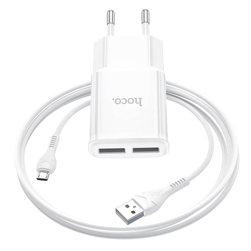 Мережевий зарядний пристрій Hoco C88A (2USB, 2.4А) White (C88AMW) + кабель MicroUSB