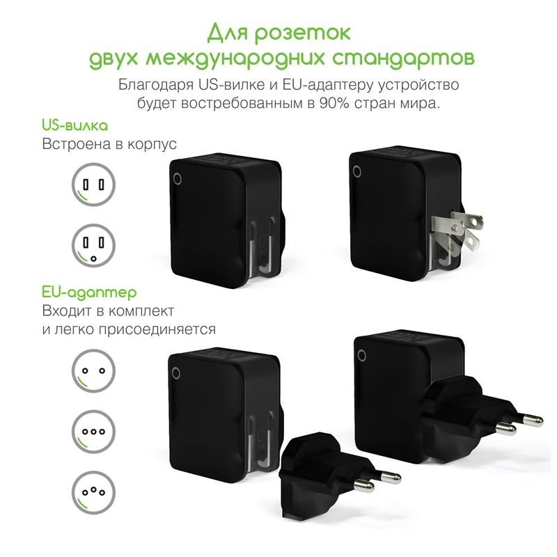 Універсальність: Завдяки наявності двох універсальних виходів USB Ви можете використовувати це зарядний пристрій з усіма сумісними USB кабелями і заряджати два пристрої одночасно.