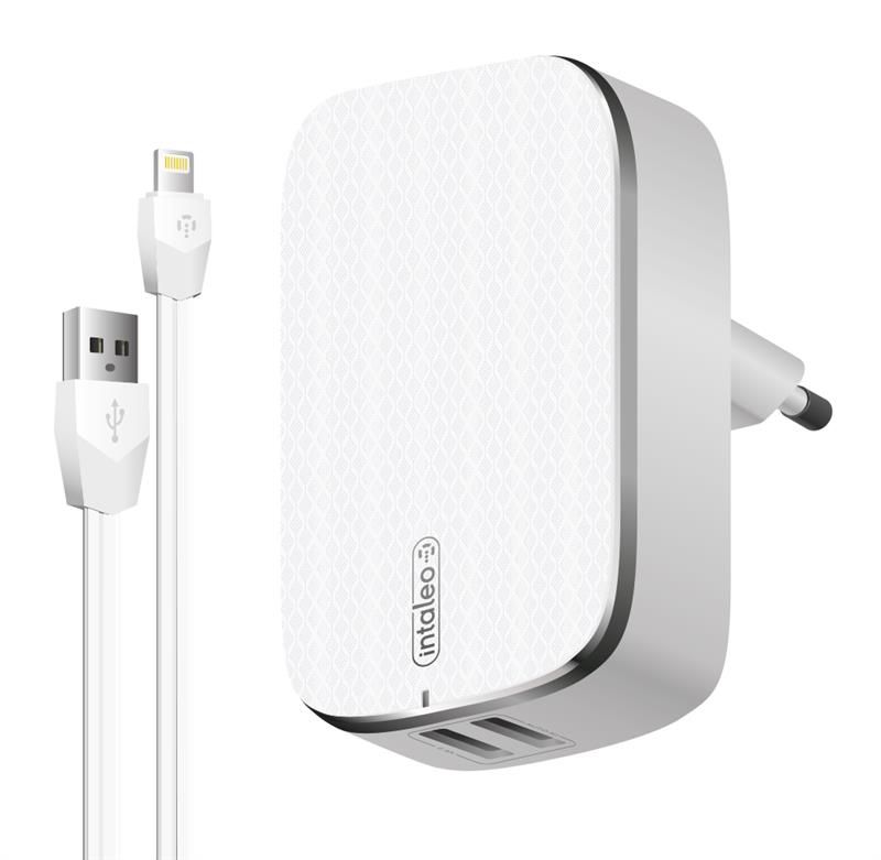 Мережевий зарядний пристрій Intaleo TCG242 (2USB, 2.4A) White (1283126477454) + кабель Lightning