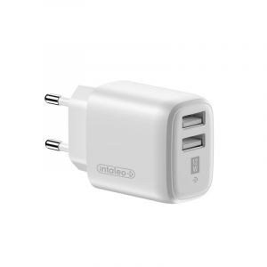 Мережевий зарядний пристрій Intaleo TCG242 з двома виходами USB, інтелектуальним керуванням живлення AUTO-ID і кабелем у комплекті.