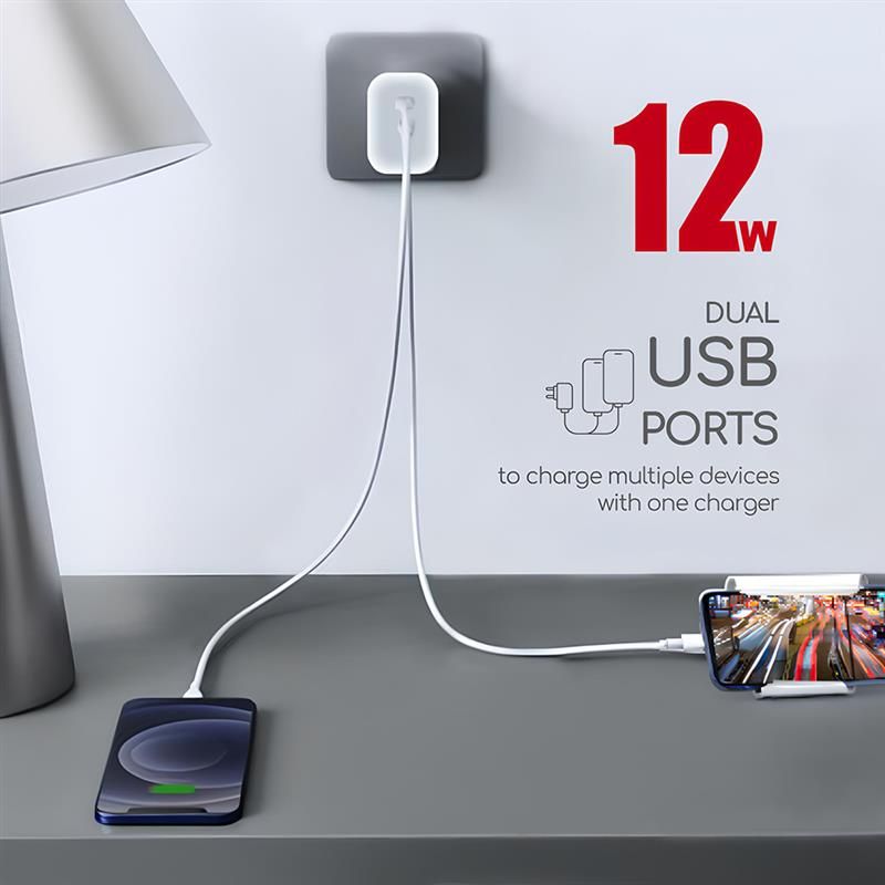 Універсальність: завдяки наявності двох універсальних виходів USB ви можете використовувати цей зарядний пристрій з усіма сумісними USB-кабелями та заряджати два пристрої одночасно.