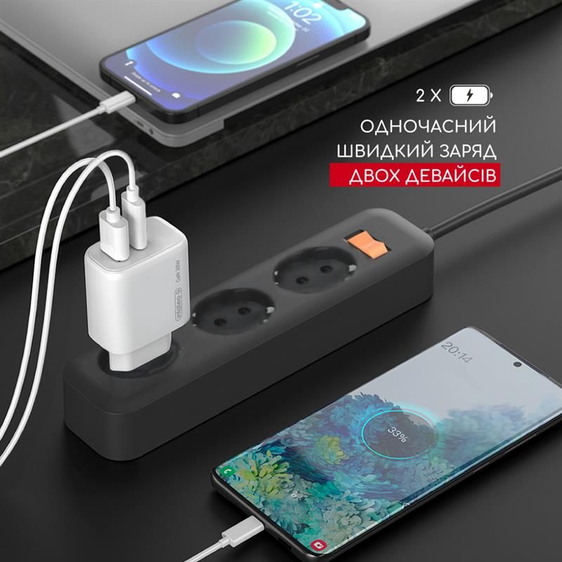 • Універсальність: завдяки наявності двох універсальних роз’ємів (USB і 2хType-C) цей зарядний пристрій використовується з усіма сумісними кабелями.