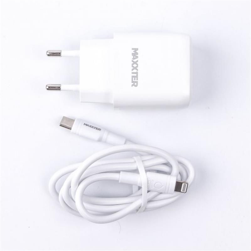 Мережевий зарядний пристрій Maxxter (1USBх3А) QC3.0 White (WC-PD-CtL-01) + кабель Lightning