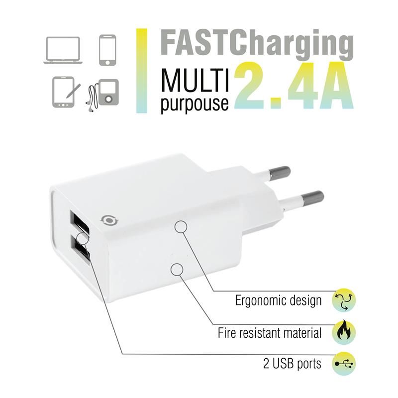 Універсальність: Завдяки наявності двох універсальних виходів USB Ви можете використовувати це зарядний пристрій з усіма сумісними USB кабелями і заряджати два пристрої одночасно.