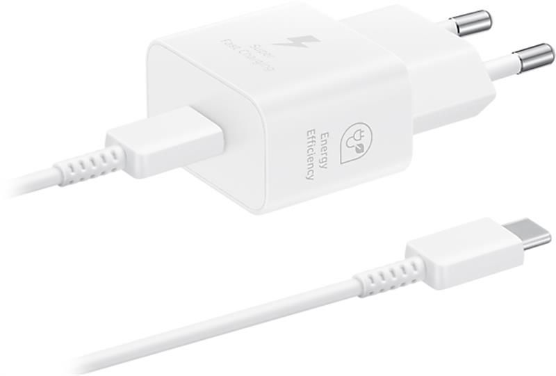 Мережевий зарядний пристрій Samsung EP-T2510XWEGEU White, 25W + кабель USB Type-C