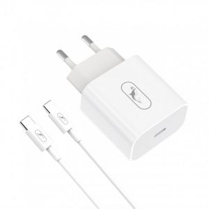 Мережевий зарядний пристрій SkyDolphin SC38T (USB TYPE-Cx2.4A) White (MZP-000183) + кабель USB Type-C