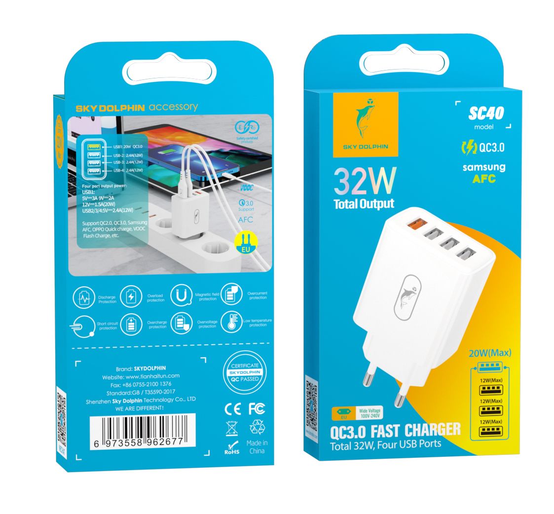 Мережевий зарядний пристрій SkyDolphin SC40 (4USBx2.4A) White (MZP-000186)