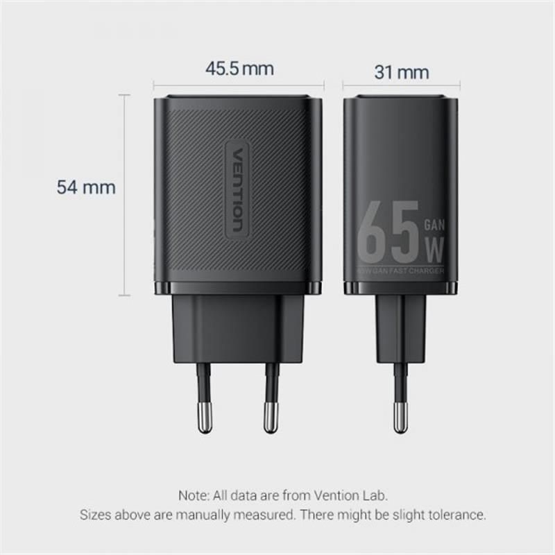 Мережевий зарядний пристрій Vention GaN III PD 65W QC3.0 5A Black (FERB0-EU)