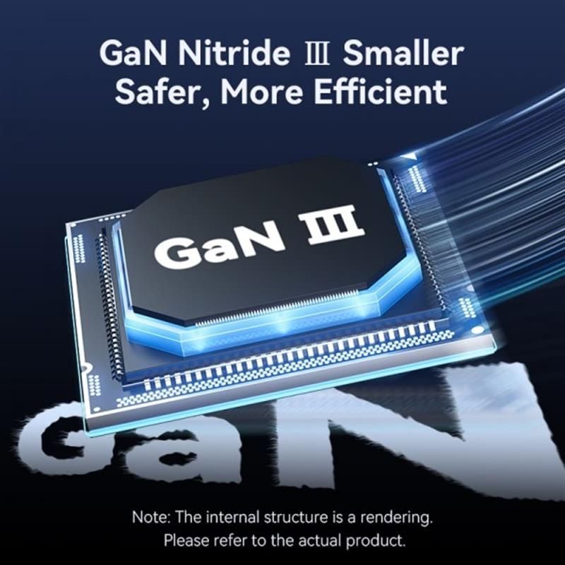 Використовуючи технологію нітриду GaN III, цей зарядний пристрій забезпечує оптимальну продуктивність при меншому виділенні тепла та ефективнішій подачі енергії, що робить його ідеальним вибором як для особистого, так і для професійного використання.