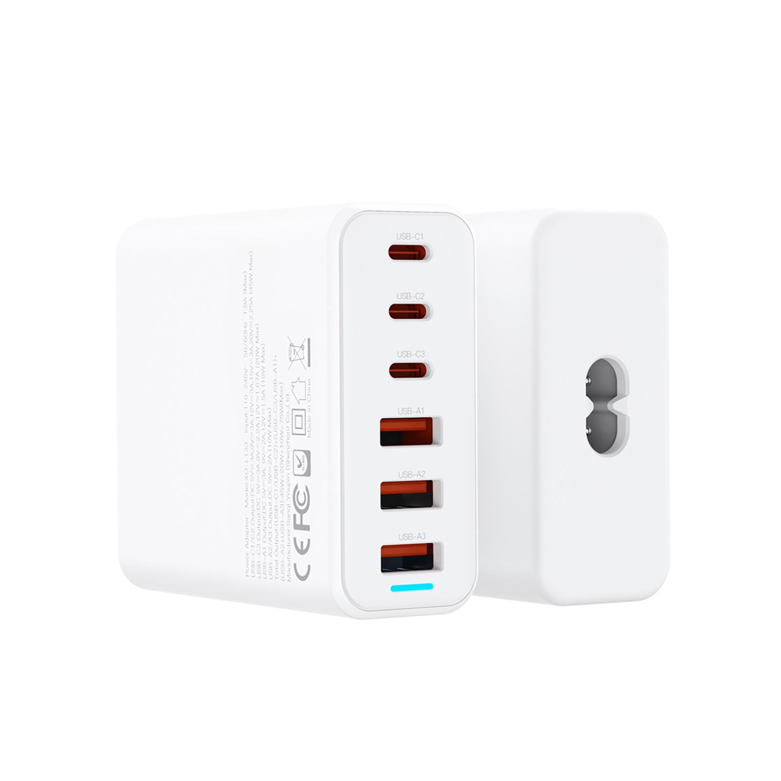 Мережевий зарядний пристрій XO L133 (3USB-С, 3USB, 3А) PD, QC 3.0 White (L133.white)
