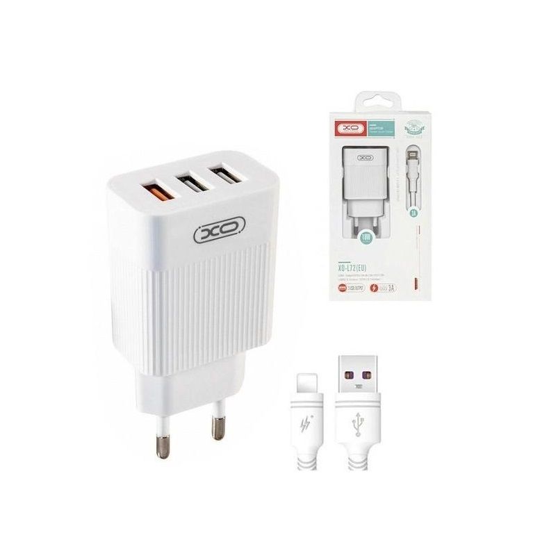 Мережевий зарядний пристрій XO L72 (1USBх3A, 2USBх2.4A) White (XO-L72i-WH) + кабель Lightning