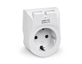 Мережевий зарядний USB-пристрій з розеткою CS-25 призначено для заряджання акумуляторів або живлення портативних пристроїв від побутової електромережі та одночасного використання його як силової розетки.
