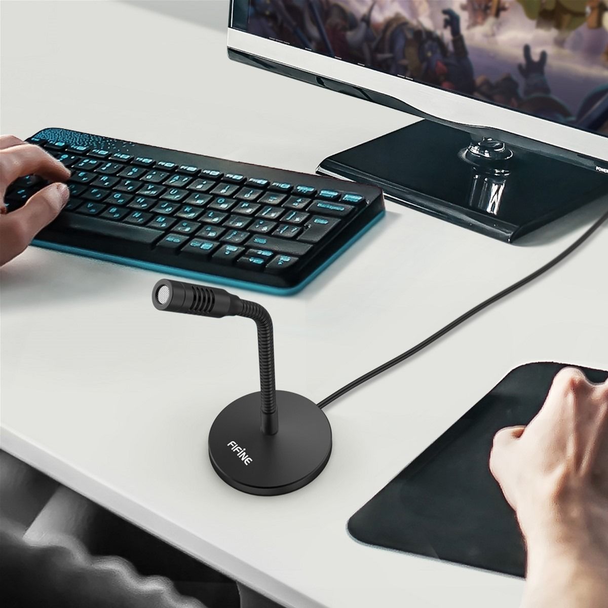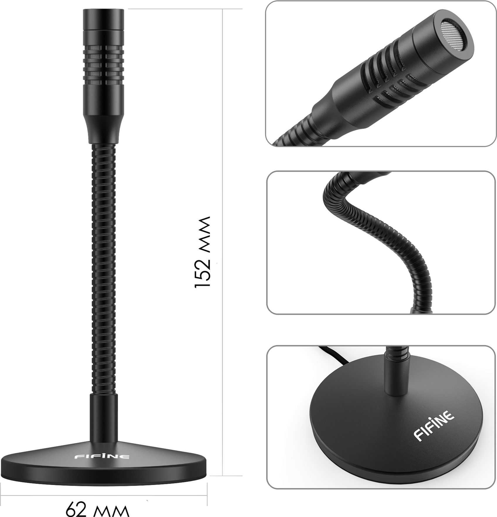 Fifine K050 – компактний настільний мікрофон на гнучкій ніжці, розроблений для любителів комп’ютерних баталій, відеоблогерів і стримерів. У підставці вмонтована USB плата, яка робить його окремим звуковим пристроєм.