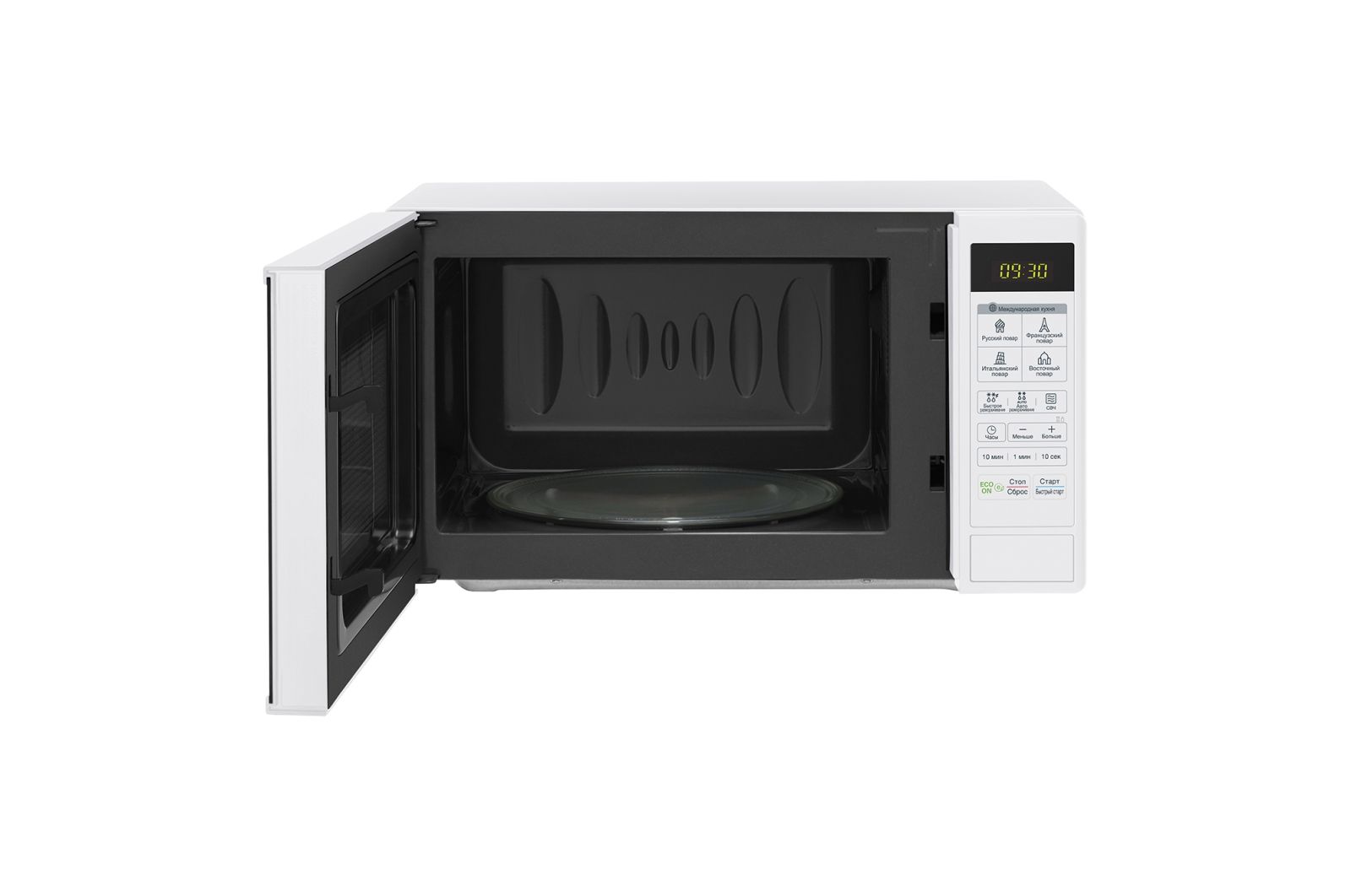 Поворотний столик, діаметр якого становить 245 мм, дозволить Вам розмістити всі необхідні продукти. Вбудована функція автоприготування надасть Вам можливість доводити улюблені страви до готовності простим натисканням декількох клавіш, а чотири режими авторозморожування позбавлять від необхідності чекати, поки заморожені м"ясо або риба будуть придатні для подальшого приготування. Міцне внутрішнє покриття відмінно чиститься і стійко до можливих пошкоджень. Додатковою перевагою пропонованої моделі є її оригінальний дизайн, в якому сріблястий колір корпусу з"єднаний з лаконічністю деталей.