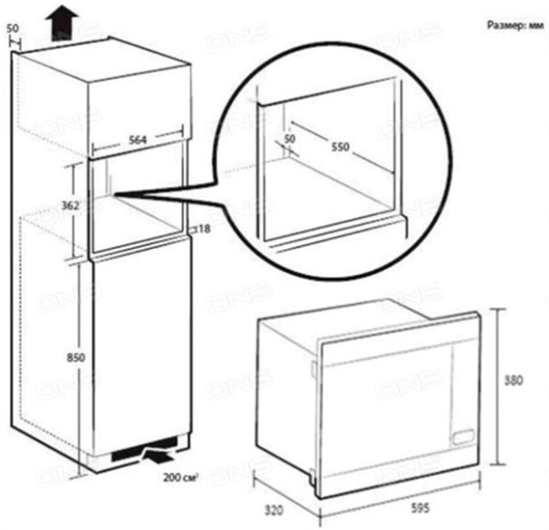 Габарити ніші для вбудовування:564 х 362 х 550 мм