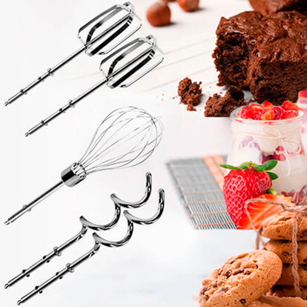 У комплекті до міксеру CECOTEC поставляється низка корисних аксесуарів з нержавіючої сталі, які стануть у нагоді в кулінарному процесі. З ними можна замішувати тісто на хліб, емульгувати вершки та готувати відмінне однорідне тісто для млинців, тортів та печива.