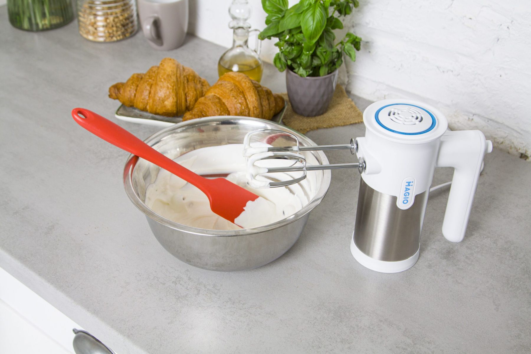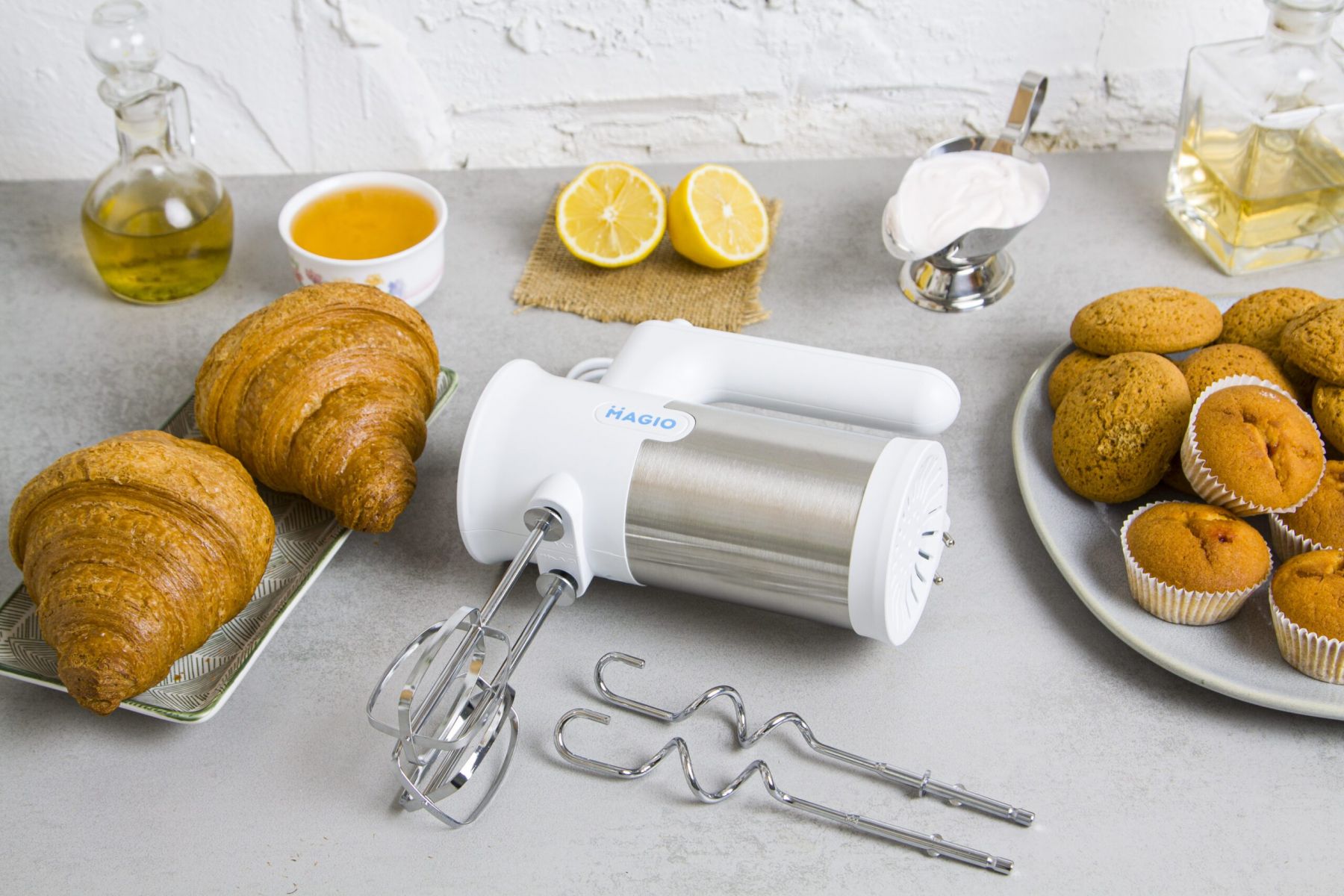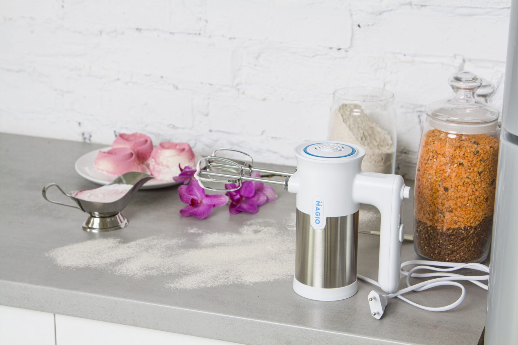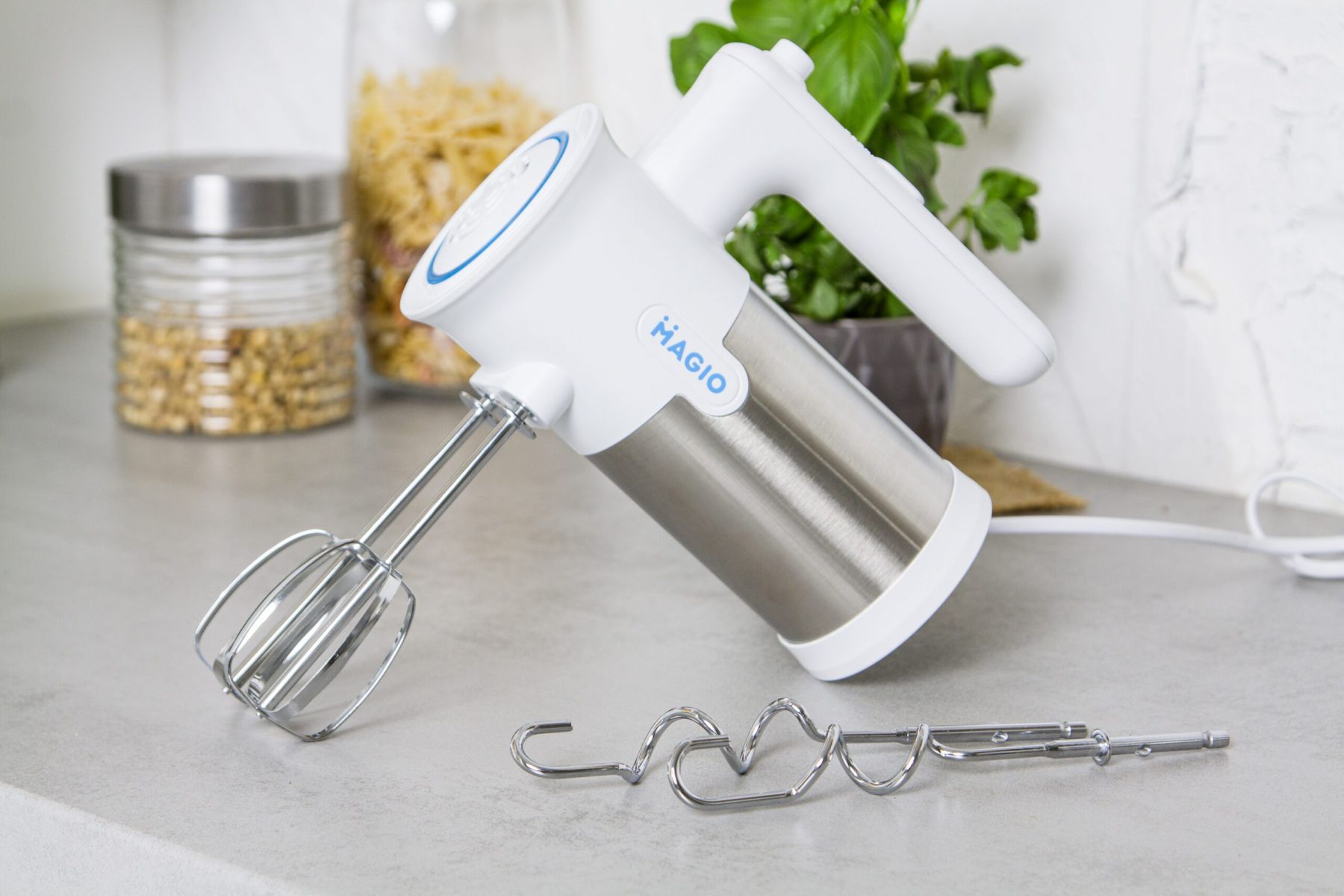 Зручний міксер MAGIO MG-230 допоможе замішувати найрізноманітніші продукти, використовуючи насадки, що додаються.