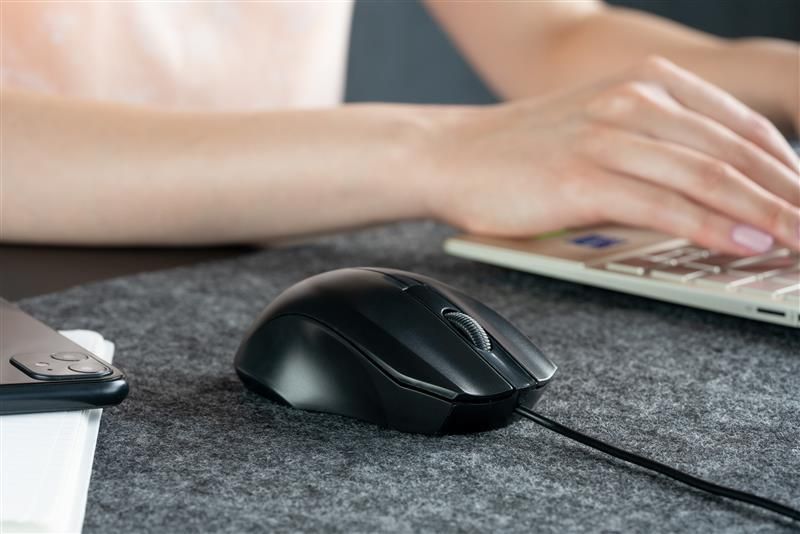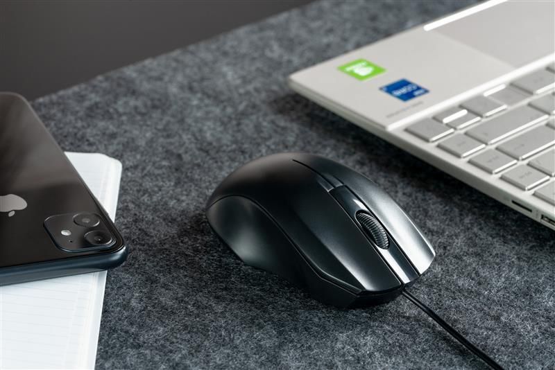 Дротова мишка виконана в класичному чорному дизайні що має плавнні лінії та обтікаєму форму. Мишка завжди готова до роботи – просто підключіть 1,5м. кабель до USB порту комп’ютера та працюйте. А ребристе коліщатко прокручування допоможе зробити скролінг більш чітким та контрольованим.