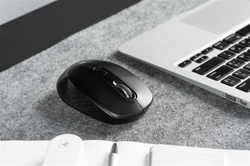 Бездротова миша виконана в зручній симетричній формі в чорному кольорі. З нею комфортно працювати тривалий час як правою, так і лівою рукою. Миша працює безшумно, тому її зручно використовувати будь-де та в будь-який період часу, нікому не заважаючи звуком кліку, а завдяки невеликій формі - зручно брати з собою.