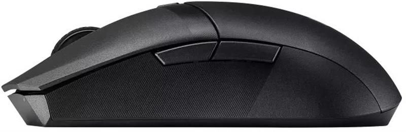 Легка симетрична ігрова миша з підтримкою двох бездротових режимів підключення, сенсором із роздільною здатністю 12 000 dpi, шістьома програмованими кнопками, верхньою кришкою з PBT-пластика з антибактеріальним покриттям ASUS Antibacterial Guard, тефлоновими ніжками і ПЗ Armoury Crate.