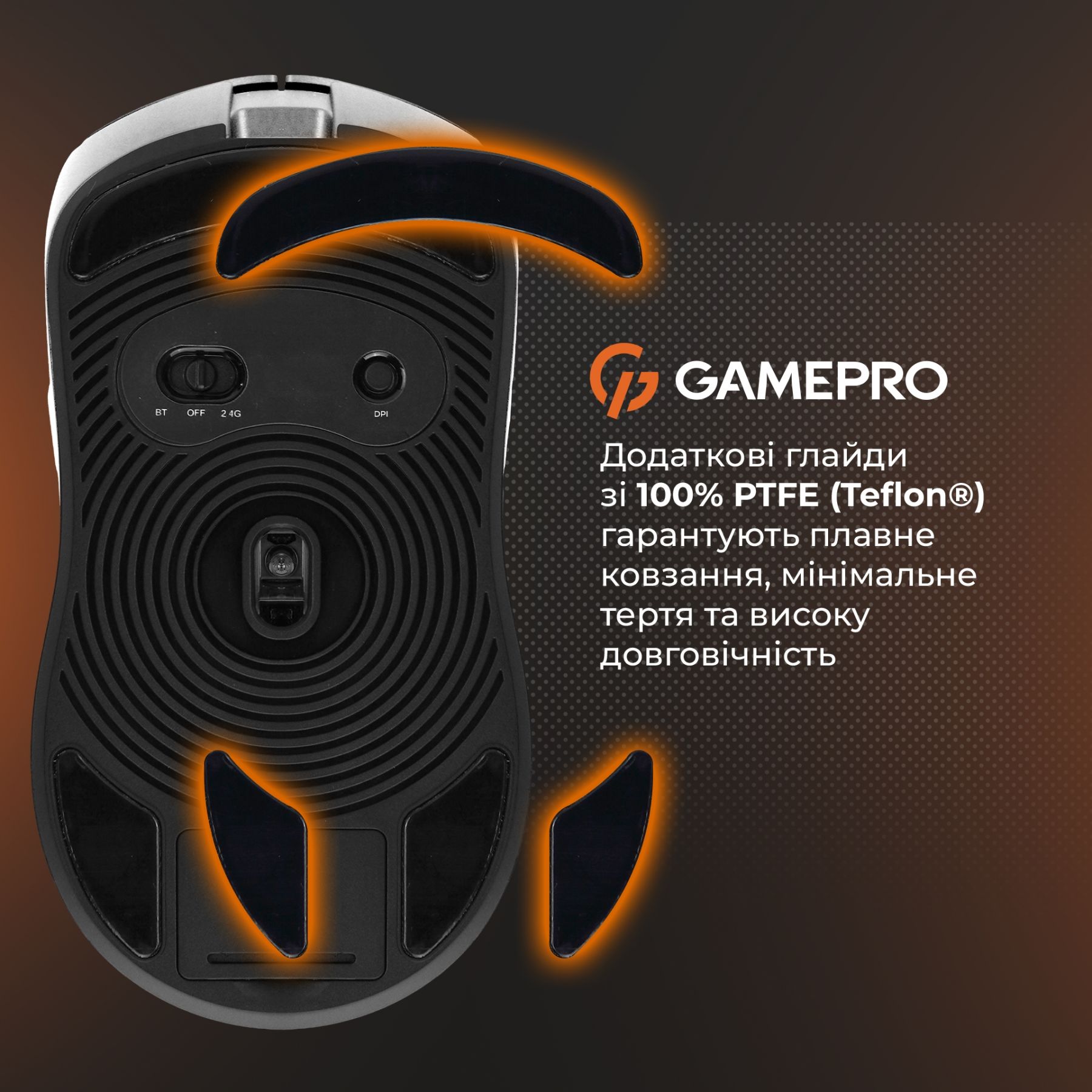 Інше:знімний USB-A to USB Type-C кабель, комплект змінних 100% PTFE глайдів, індикатор рівня заряду