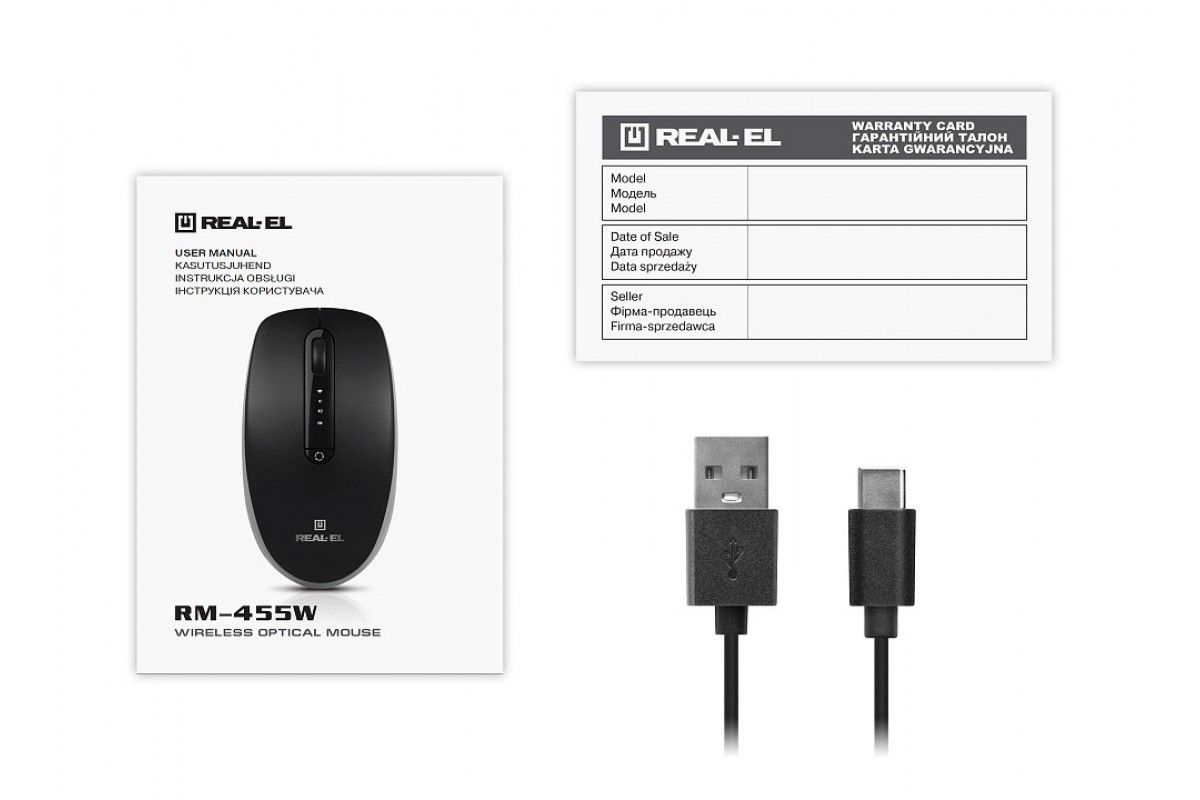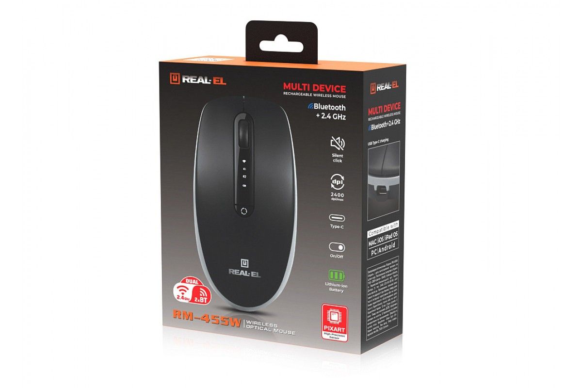 Бездротова оптична мишка REAL-EL RM-455W поєднує в собі функціональність, стиль та зручність. Завдяки безшумним клавішам вона ідеально підходить для роботи в тихих середовищах, а ергономічна конструкція забезпечує комфорт навіть при тривалому використанні.