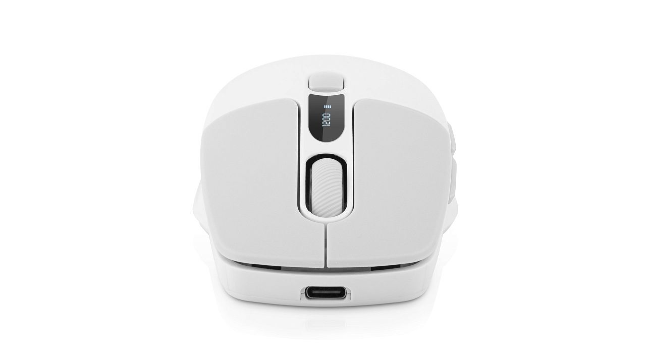 Мишка обладнана світлодіодним дисплеєм, що відображає рівень заряду акумулятора та вибрану чутливість сенсора, забезпечуючи зручний контроль за роботою пристрою.