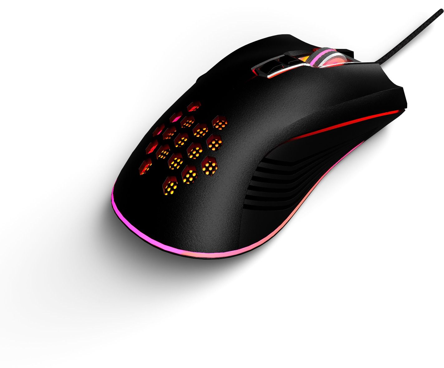 Монохромний дизайн і проста форма універсальні для будь-якого методу захвату. Бокові вставки з металу у комбінації з яскравою RGB підсвіткою виглядають гармонічно та стильно. Завдяки прогумованому покриттю миша не ковзає в руці. Девайс оснащений 8 програмованими кнопками та RGB підсвіткою з 4 режимами. Високий показник чутливості до 6400 DPI дозволяє повною мірою розкрити потенціал геймера, не залежно від ігрового жанру.