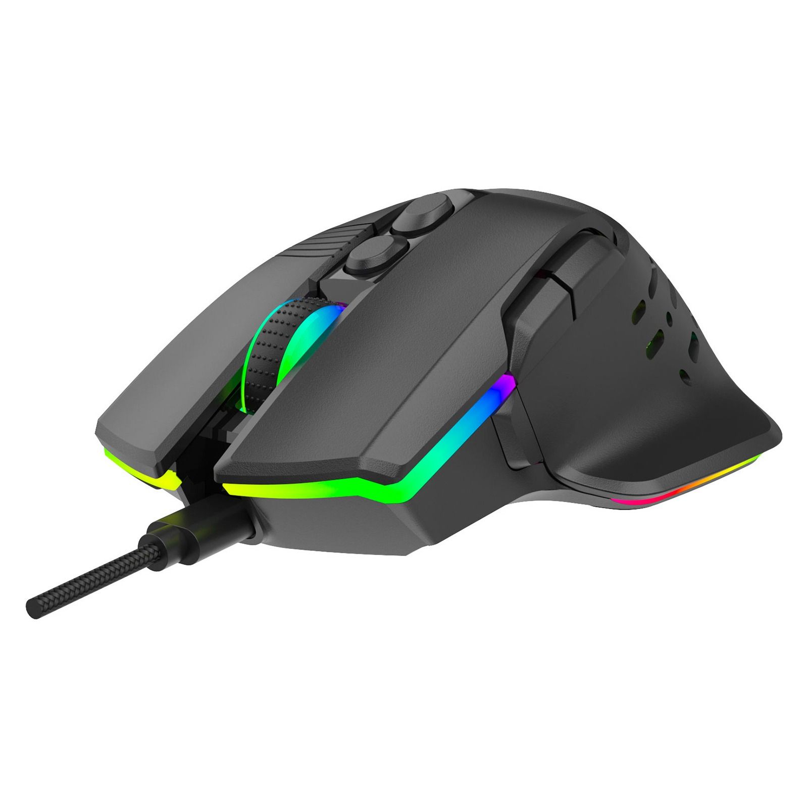 Ця миша – справжній воїн у світі геймінгу з 9 кнопками, які дозволяють вам легко виконувати навіть найскладніші дії у грі. Завдяки чіпсету Sunplus6662 вона працює з неймовірною точністю та надійністю. Один із важливих аспектів геймінгу – атмосфера, і ця миша це розуміє. З шістьма режимами RGB підсвічування ви можете створити свій амбіанс на геймінговому столі, підкреслюючи вашу індивідуальність. Щодо точності, то ви можете легко вибрати оптимальний DPI, регулюючи його в межах від 1200 до 12000 потужних DPI. Незалежно від того, чи переслідуєте ви ворогів на далекій відстані або ведете вогонь у ближньому бою, ця миша підлаштовується під ваші потреби. Перемикач HUANO з терміном служби 10 мільйонів разів забезпечує довговічність миші, і ви можете бути впевнені, що вона прослужить вам довгий час. Частота опитування на рівні 500 Гц забезпечує миттєвий відгук миші на ваші команди, забезпечуючи вас перевагою над суперниками. Кабель довжиною 1.5 метра з плетінням надійно захищає мишу від будь-яких пошкоджень і дозволяє вільно маневрувати на геймінговому столі. З розмірами 82 x 123 x 45 мм та чорним кольором ця миша виглядає стильно та сучасно, і вона готова допомогти вам завоювати світ геймінгу.