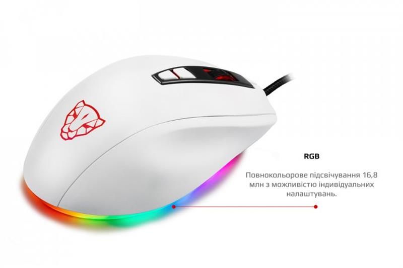 Яскраве та ефектне повнокольорове підсвічування RGB, 16,8 млн, з можливістю зміни режимів, що занурить вас у атмосферу гри. Реалізована індикація обраного режиму DPI за допомогою кольору підсвічування логотипу.