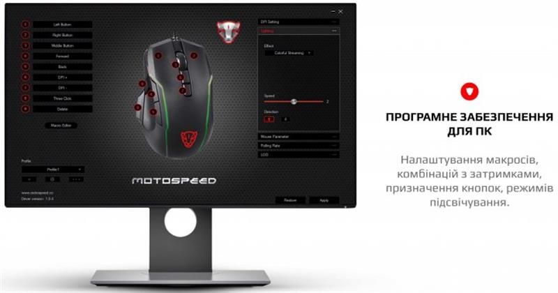 Неймовірно зручна та потужна миша Motospeed стане незамінним складником твоєї перемоги. Ідеальний дизайн, який гарантує комфортні відчуття і знижує втому. Точне збирання та якісний пластик, відсутність люфтів і надмірних зазорів подарують задоволення від користування.