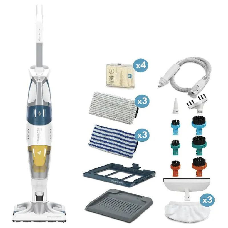 Входить до комплекту постачання:пилосос-пароочисник, насадки для кухні та ванної кімнати, насадка для плитки (очищення швів), універсальна насадка носик, насадки для вікон та дзеркал, трубка подовжувач, мікрофібра для щоденного використання, мікрофібра жорстка для важких забруднень, піддон для зберігання