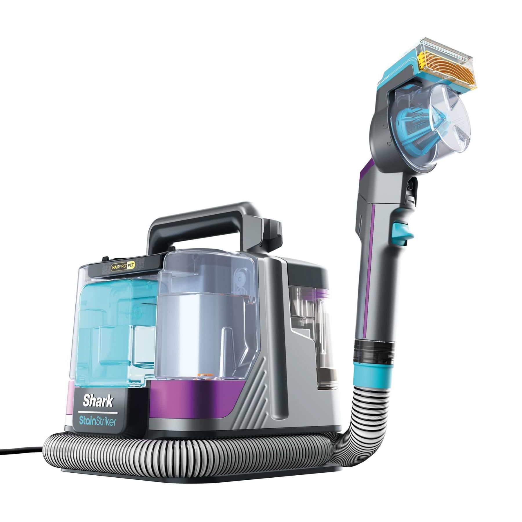 Надпотужне видалення стійких плям від домашніх улюбленців: розроблений для приміщень де живуть домашні тварини. Shark StainStriker HairPro Pet забезпечує надпотужне всмоктування без попередньої обробки. Видаляє стійкі забруднення та запахи, такі як сеча домашніх тварин, за один раз.