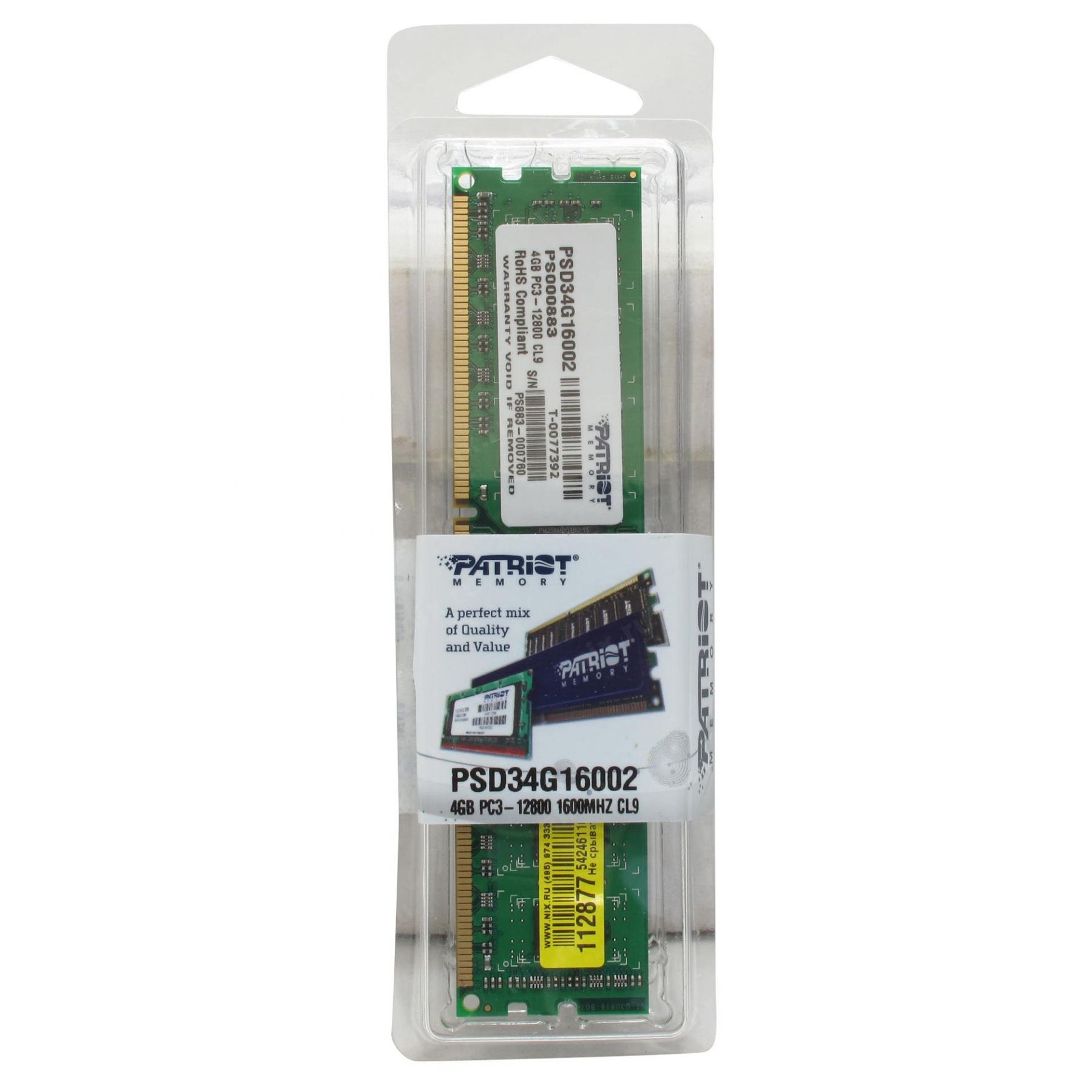 DDR3 4096Mb Patriot (PSD34G16002) - це модуль пам'яті однією планкою на 4096MB. Пам'ять працює з тактовою частотою 1600 MHz, і з піковою швидкістю передачі даних 12800 МБ/с.