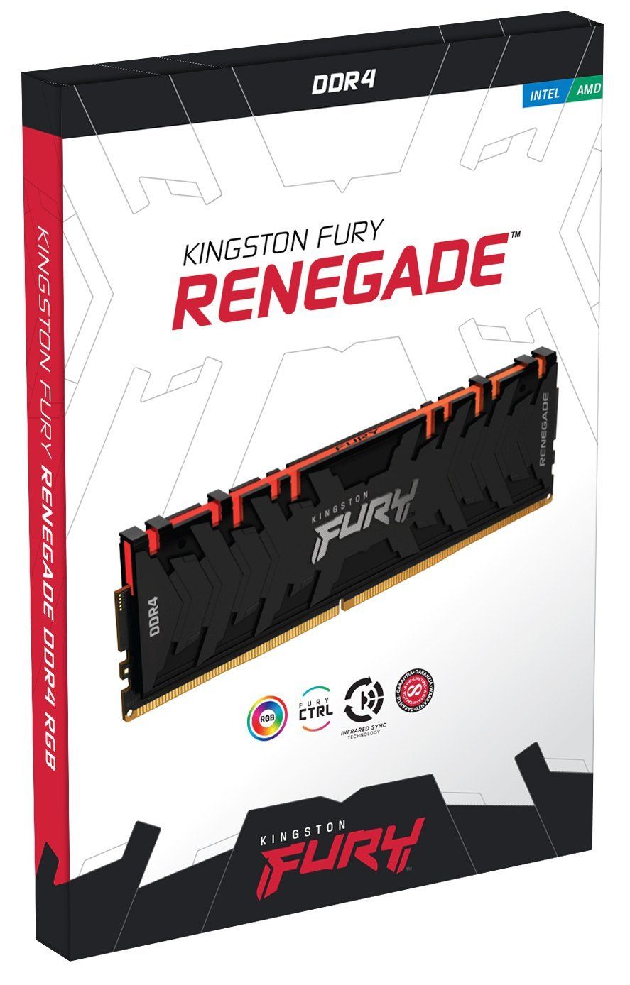 Надзвичайно швидка пам’ять Kingston FURY Renegade DDR4 RGB - це справжній подарунок для будь-якого геймера, який бажає підвищити швидкість роботи комп’ютера з процесором AMD або Intel і додати «родзинку» до його зовнішнього вигляду за допомогою яскравого повнокольорового підсвічування. Динамічне RGB-підсвічування забезпечене власною патентованої технологією Kingston FURY Infrared Sync Technology, плавні переливи барв, що налаштовується за допомогою програмного забезпечення Kingston FURY CTRL або програмного забезпечення для управління RGB-підсвічуванням, що поставляється в комплекті з материнською платою.