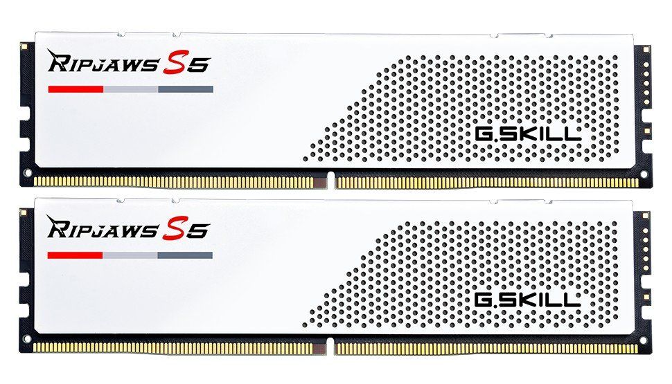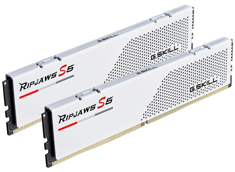 Ripjaws S5 - це серія високопродуктивних модулів пам’яті DDR5 DRAM, створених з використанням перевірених вручну мікросхем пам’яті, які пройшли суворі перевірки G.SKILL. Кожен комплект пам’яті Ripjaws S5 забезпечує ідеальний баланс між продуктивністю, сумісністю та стабільністю та доступний у матово-чорному або матово-білому алюмінієвому радіаторі.