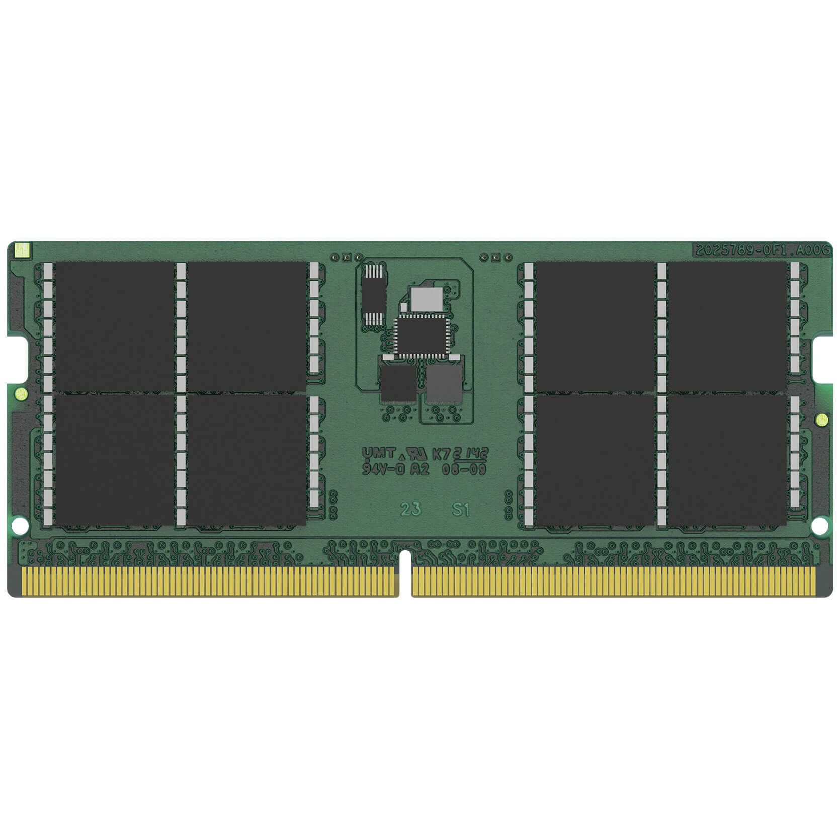 KVR48S40BD8-32 від ValueRAM є дворенковим небуферованим модулем пам'яті SODIMM DDR5-4800 CL40 SDRAM (синхронна DRAM) 4G x 64-біт (32 ГБ), 2Rx8, побудований з використанням шістнадцяти 16-гігабітних FB. У SPD запрограмовані стандартні параметри JEDEC DDR5-4800 зі схемою таймінгів CL40-39-39 при напрузі живлення 1,1 В. 262-контактний модуль форм-фактору SODIMM має позолочені контакти.