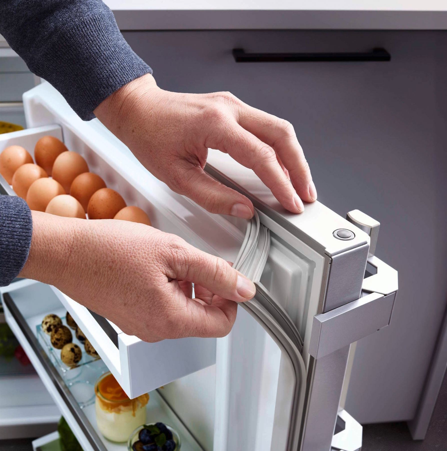 Якщо через кілька років ви захочете замінити дверний ущільнювач вашого Liebherr, то зможете зробити це самостійно. Дверний ущільнювач легко знімається й встановлюється, тому його легко підтримувати в бездоганному й гігієнічно чистому стані.