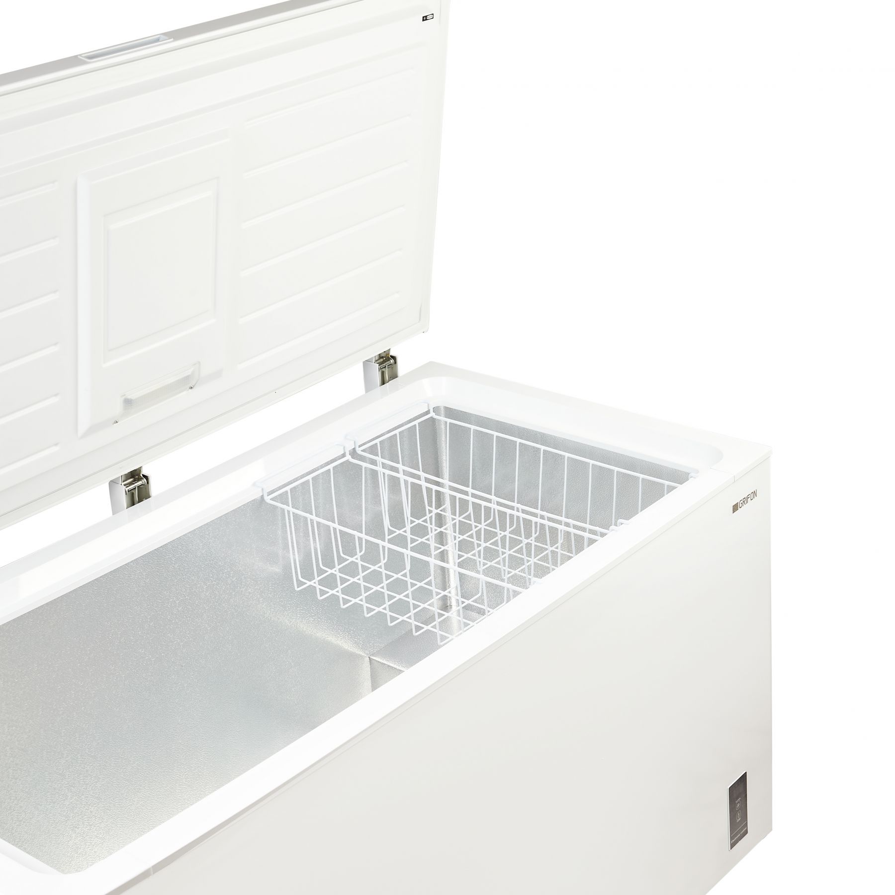 Єдиний простір скрині має загальний об’єм 418 літрів, що чудово підходить для вміщення та комфортного компонування різних типів продуктів — фруктів, овочів, напівфабрикатів, м’яса, риби та фаршу. Тут передбачено дві навісні металеві корзини, в які можна покласти дрібну заморозку — лід чи морозиво.